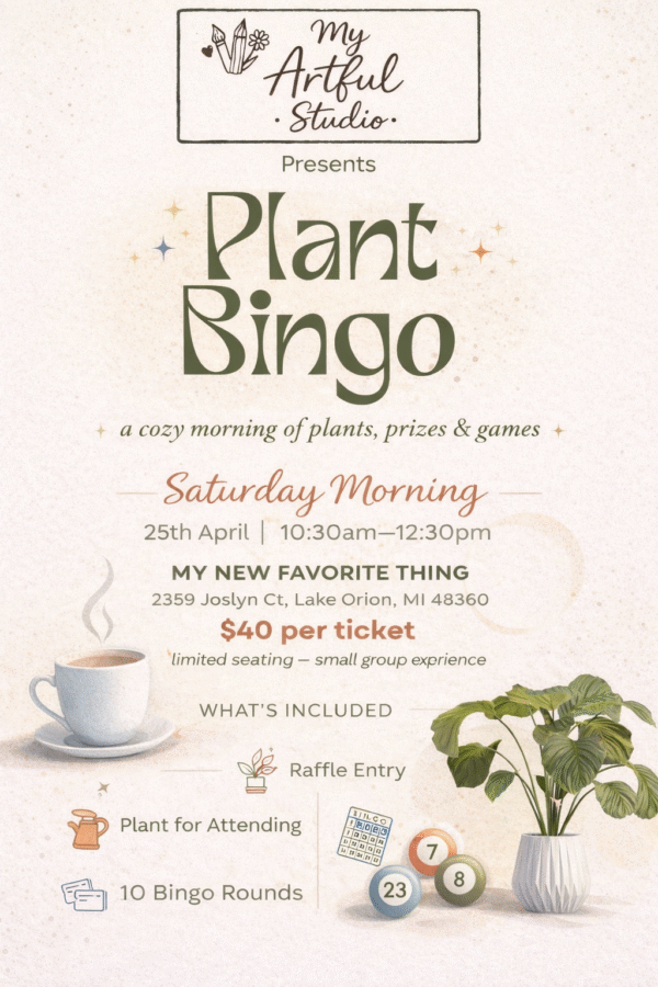 Plant Bingo~ Saturday Morning Edition☕️🪴 Date: Saturday, April 25th, 2026 Time: 10:30am-12:30pm Cost: $40 per ticket Register using this link: https://square.link/u/Kfxk7IxJ Seats: 24 Age limit: All ages welcome 💕 Registration ends at 10:30am, 4/25/26. Cancellation policy: No refunds. If you cannot… Continue Reading →